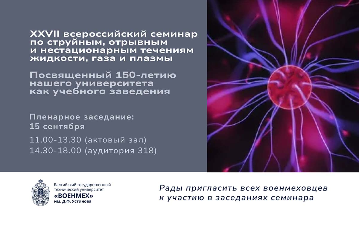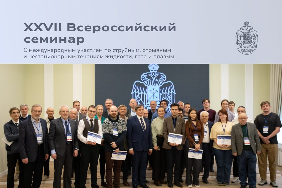 15 ‒ 19 сентября 2025 года в Балтийском государственном техническом университете «ВОЕНМЕХ» им. Д. Ф. Устинова прошел XXVII Всероссийский семинар с международным участием по струйным, отрывным и нестационарным течениями жидкости, газа и плазмы.