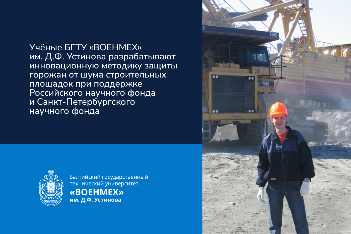 Достижения, Наука, Новости0pxКоллектив учёных БГТУ «ВОЕНМЕХ» им. Д.Ф. Устинова стал победителем совместного конкурса Российского научного фонда (РНФ) и Санкт-Петербургского научного фонда (СПбНФ) с проектом, направленным на решение одной из самых острых экологических проблем мегаполисов – акустического загрязнения, создаваемого строительной техникой.