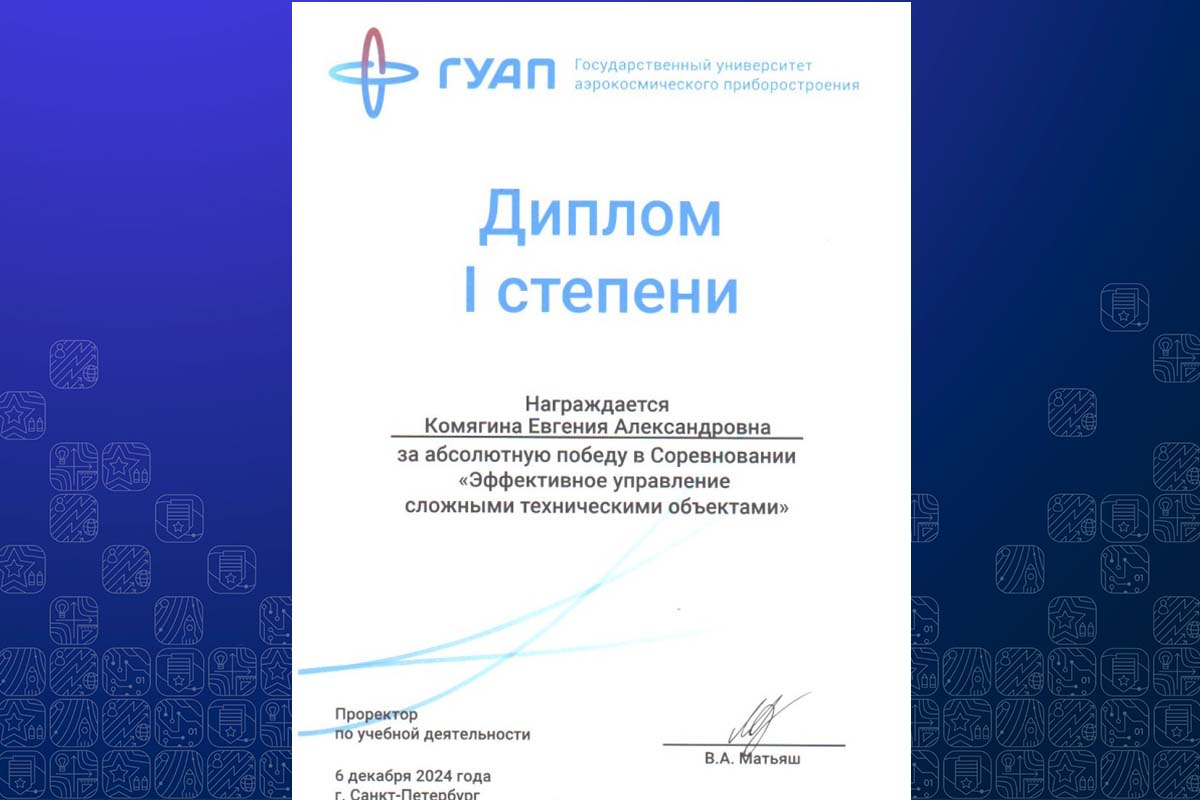 Команда студентов факультета И кафедры И9 «Систем управления и компьютерных технологий» приняла участие в соревновании «Эффективное управление сложными техническими объектами». Соревнование проводилось 4 декабря 2024 года на базе Санкт-Петербургского государственного университета аэрокосмического приборостроения.