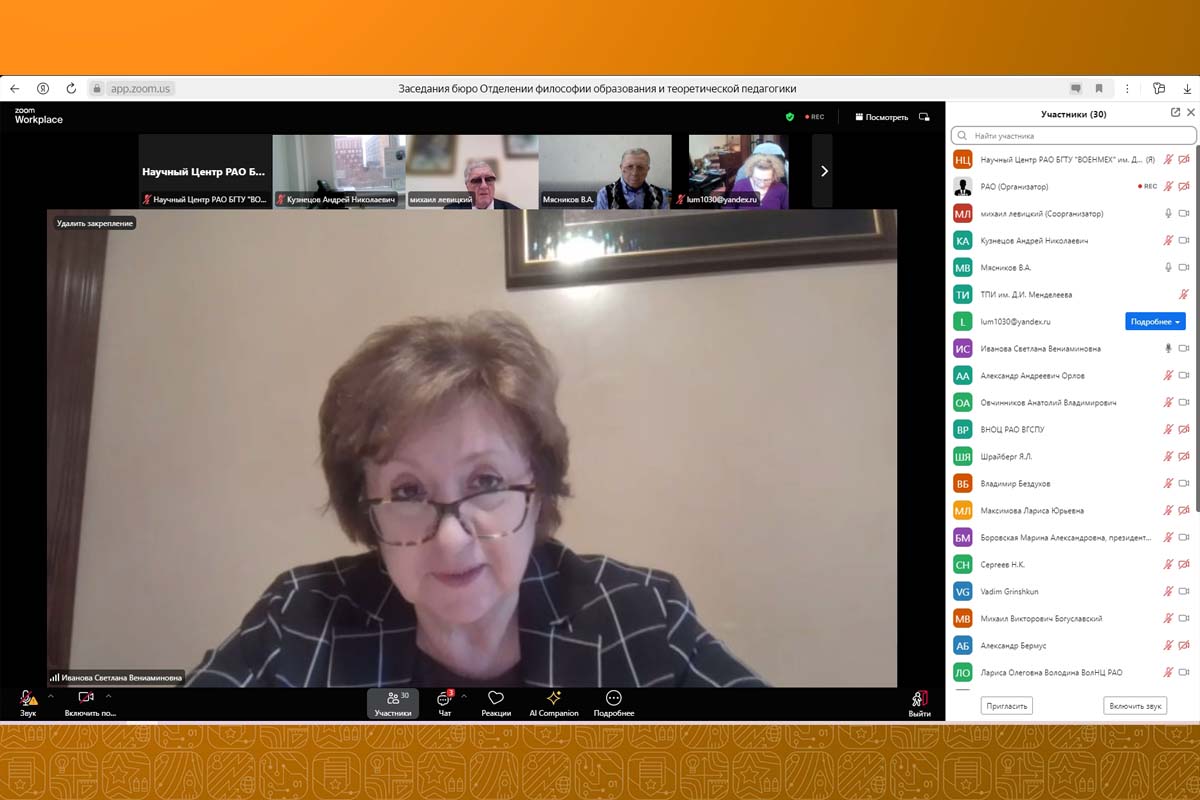 7 июля Шматко Алексей Дмитриевич, руководитель научного центра Российской академии образования при БГТУ «ВОЕНМЕХ» им. Д. Ф. Устинова, принял участие в общественно-профессиональном обсуждении по итогам апробации научно-педагогической модели наставничества в «Движении Первых» для разработки программы её внедрения в регионах Российской Федерации.
