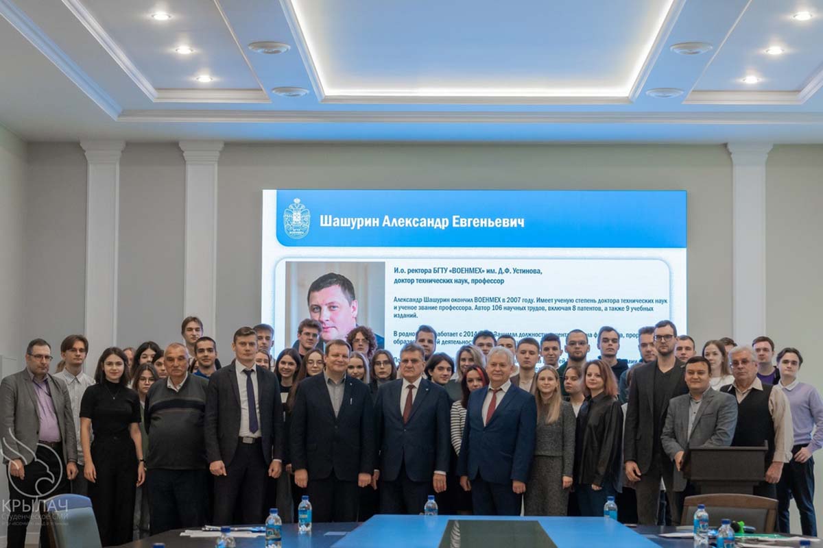 В пятницу, 22 декабря 2023 года, в Главном здании БГТУ ВОЕНМЕХ им. Д.Ф. Устинова состоялась встреча с почётным гостем нашего университета, руководителем центра бизнес-технологий кандидатом технических наук Владимиром Казимировичим Гайдо.