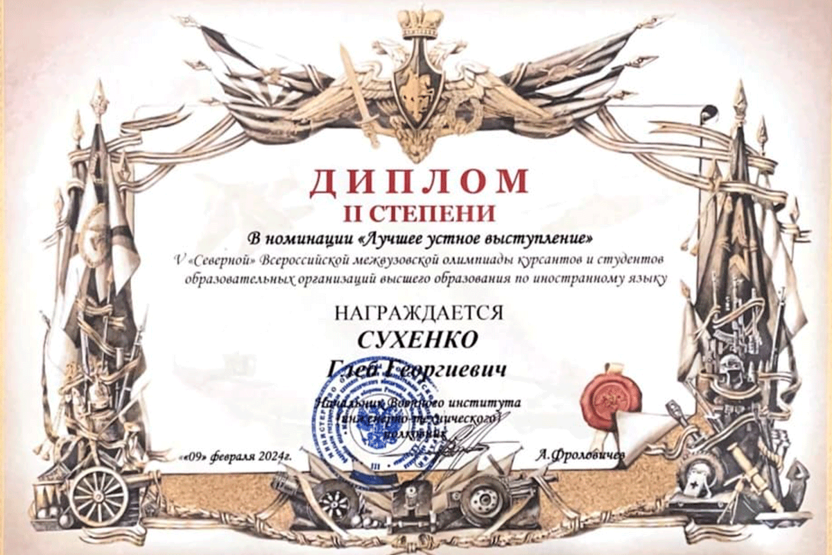 4-6 февраля 2025 года состоялась VI «Северная» Всероссийская межвузовская олимпиада курсантов и студентов образовательных организаций высшего образования по иностранному языку на базе Военного инженерно-технического института имени генерала армии А.В. Хрулёва. Команда БГТУ «ВОЕНМЕХ» кафедры Р7 «Теоретической и прикладной лингвистики» в составе студентов группы Р 705 Гоголева Константина, Соболя Назара и Сухенко Глеба отлично выступила в […]