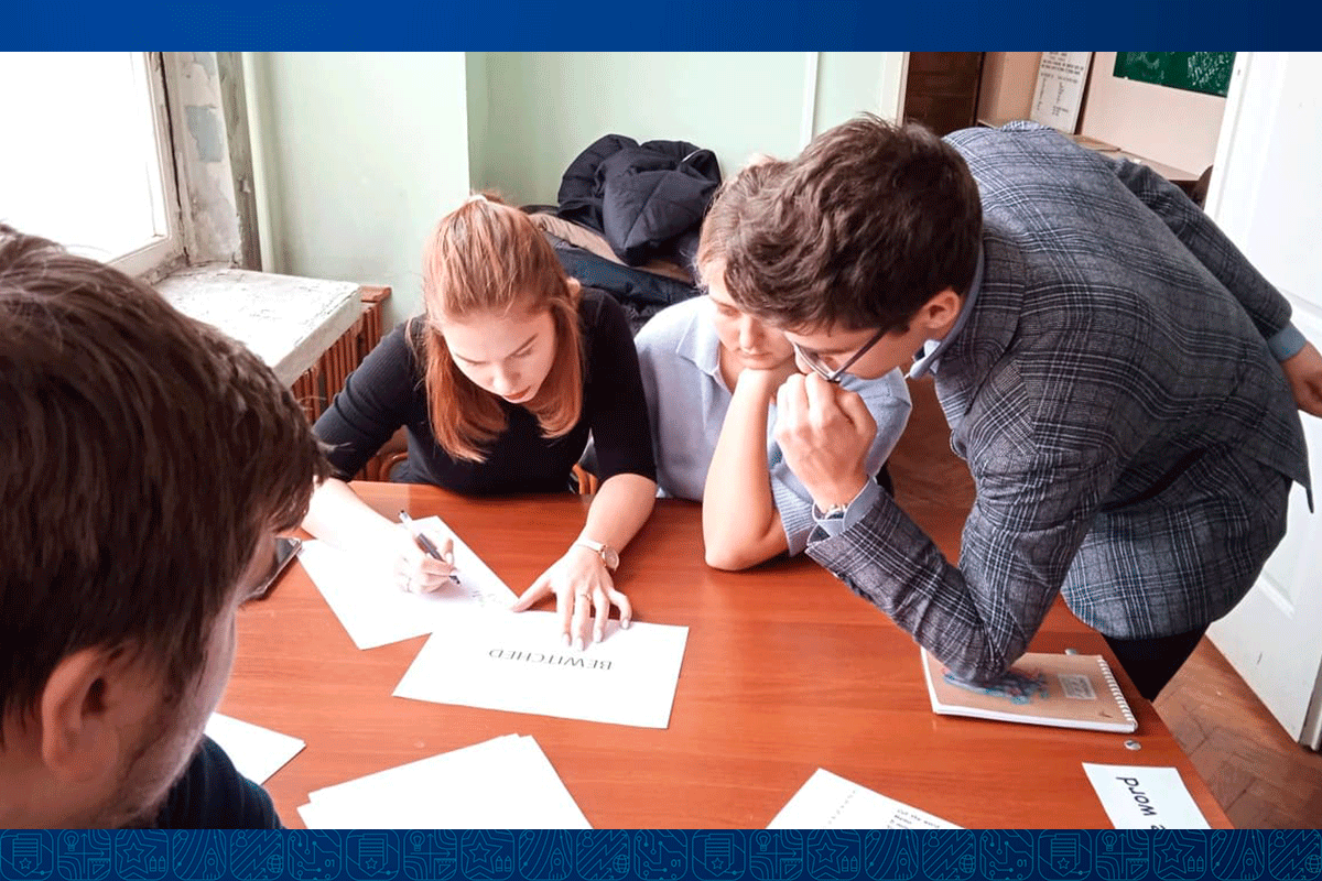 Студенты группы А 821 подготовили разнообразные задания, при выполнении которых школьники смогли продемонстрировать кругозор, отличное знание языка и эффективную командную работу.