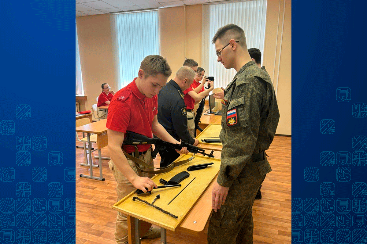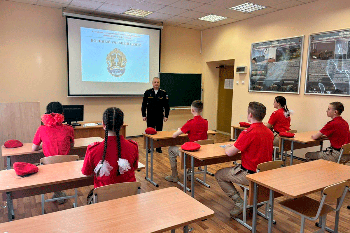 В рамках проведения военно-патриотического воспитания 11 апреля прошли занятия с юнармейцами из Свердловской области. Сотрудники Военного учебного центра при БГТУ «ВОЕНМЕХ» им. Д.Ф. Устинова в течение дня провели занятия с учащимися по следующим дисциплинам: