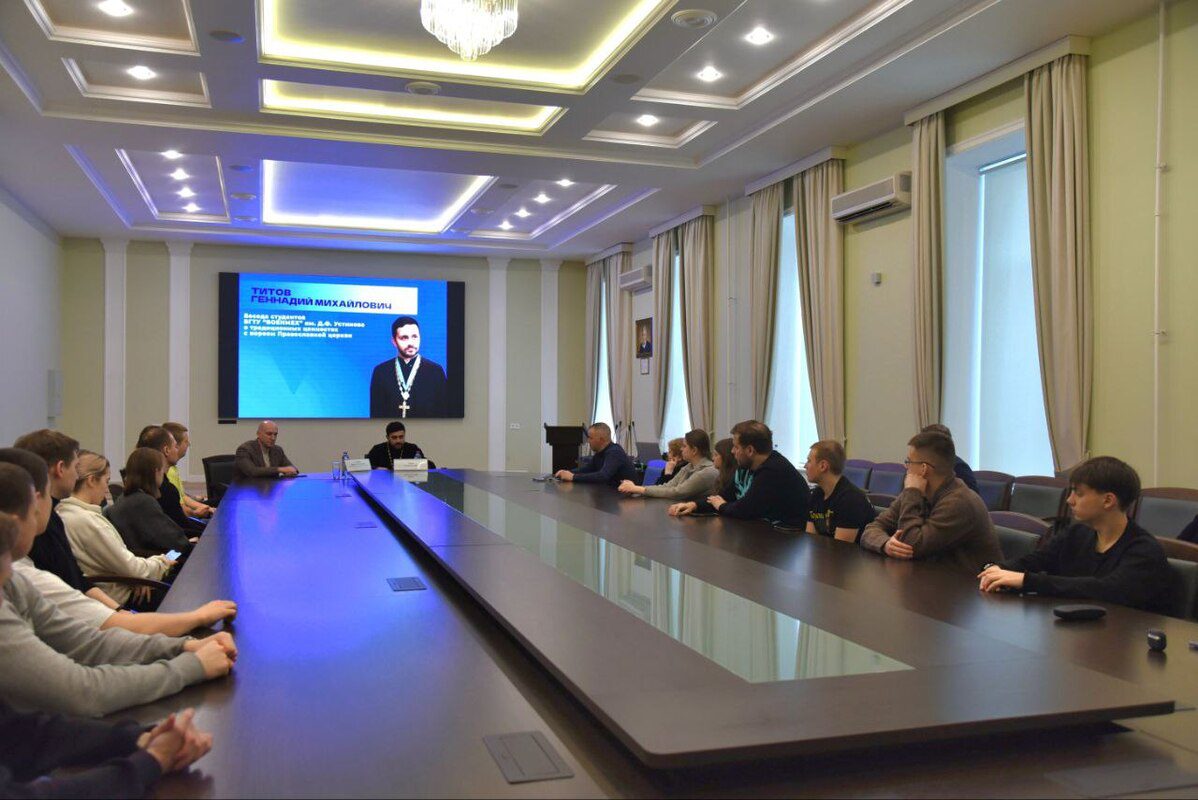 В пятницу, 14 февраля, в БГТУ «ВОЕНМЕХ» им. Д.Ф. Устинова состоялась открытая беседа с иереем Геннадием Михайловичем Титовым. Встреча прошла в аудитории 217 и собрала студентов, преподавателей и сотрудников университета, интересующихся вопросами духовности и моральных ценностей.