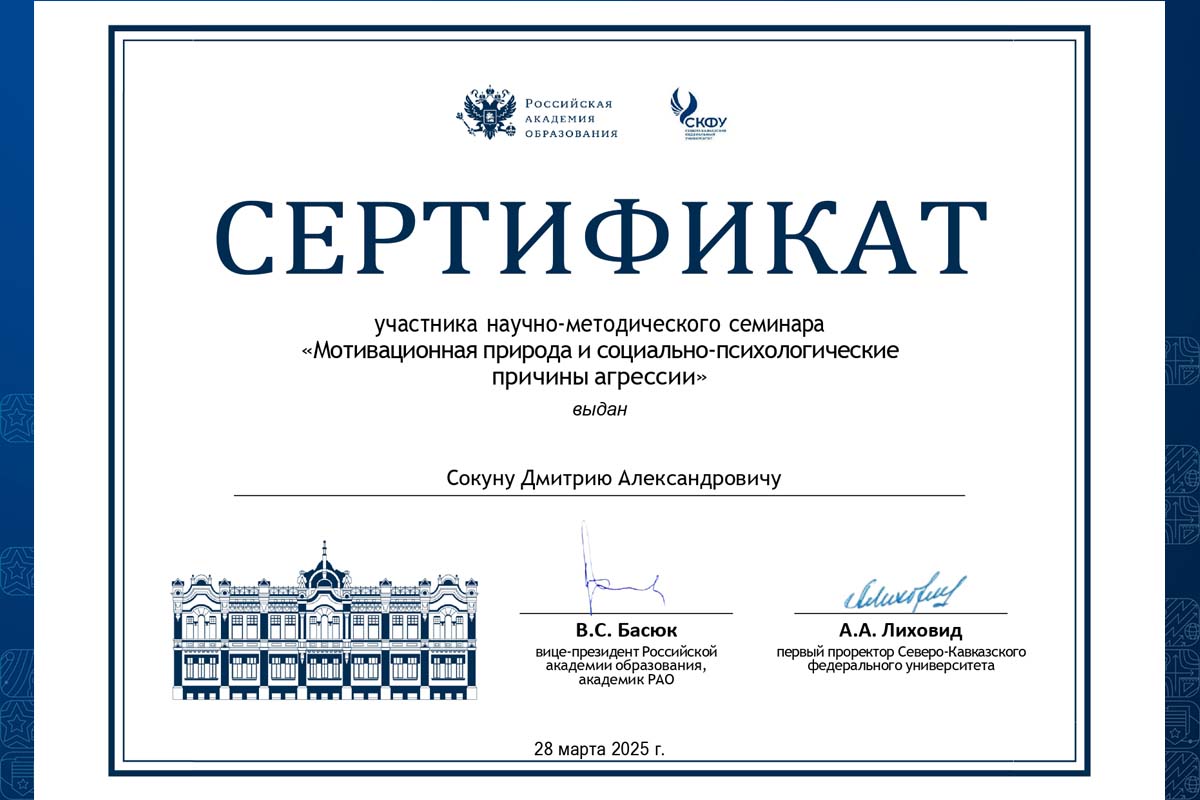 Отдел психологического сопровождения принял участие в научно-методическом семинаре Российской академии образования «Мотивационная природа и социально-психологические причины агрессии» на базе Северо-Кавказского федерального университета.