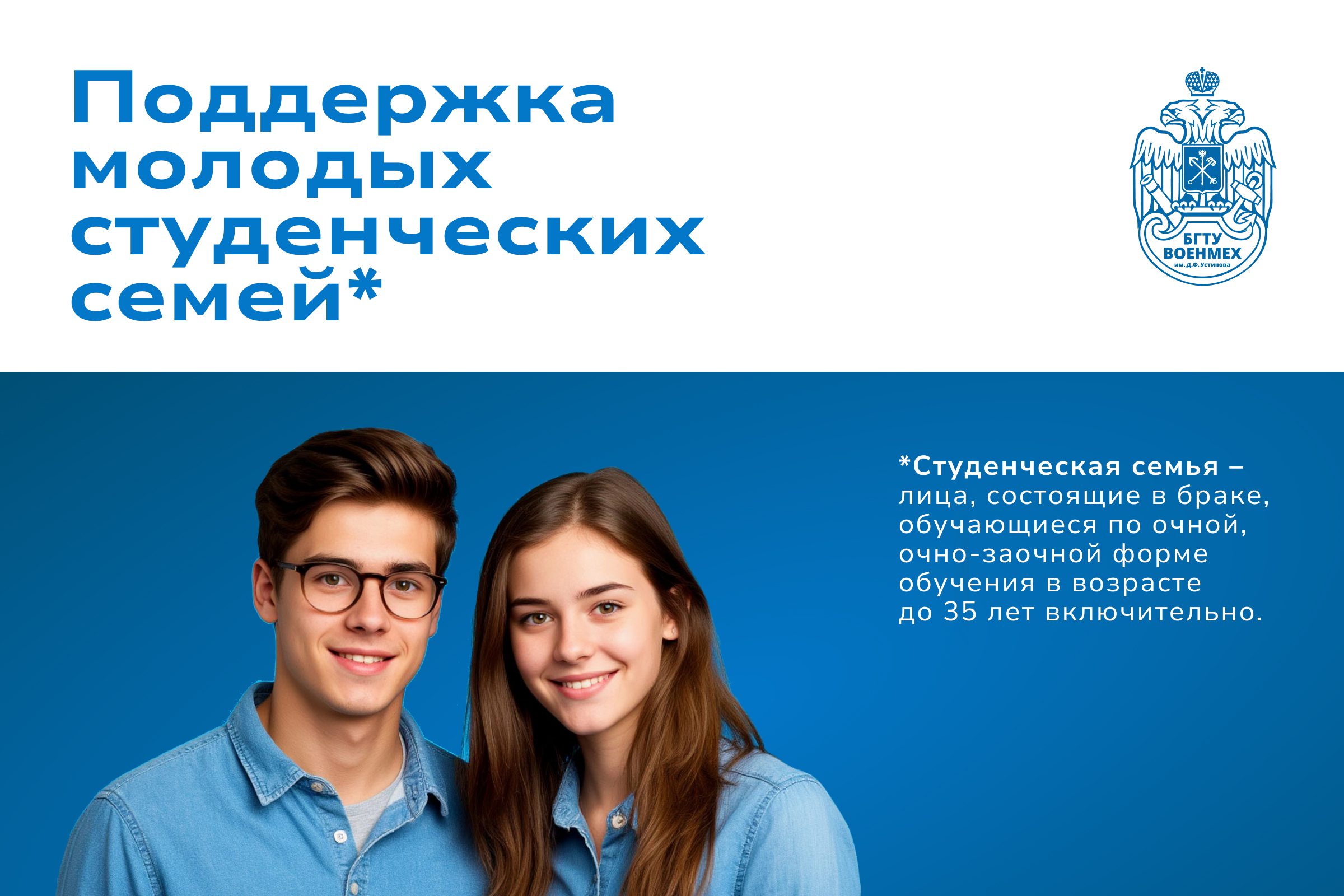 БГТУ «ВОЕНМЕХ» им. Д.Ф. Устинова активно поддерживает молодые студенческие семьи, предоставляя различные виды материальной помощи. Если вы состоите в браке, учитесь на очном или очно-заочном отделении и воспитываете ребенка (или только планируете семью), университет предлагает финансовую поддержку на разных этапах вашей жизни.