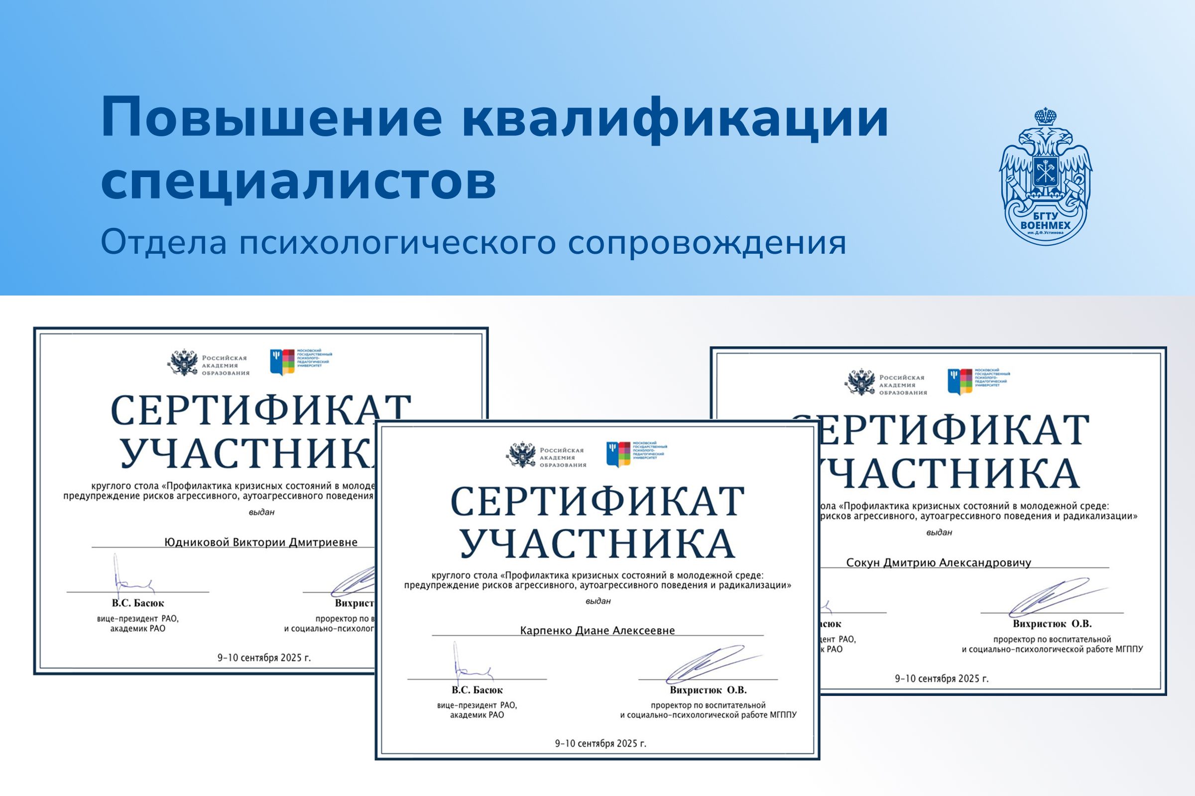 Специалисты отдела психологического сопровождения приняли участие в круглом столе Российской академии образования «Профилактика кризисных состояний в молодёжной среде: предупреждение рисков агрессивного, аутоагрессивного поведения и радикализации» на базе Московского государственного психолого-педагогического университета.