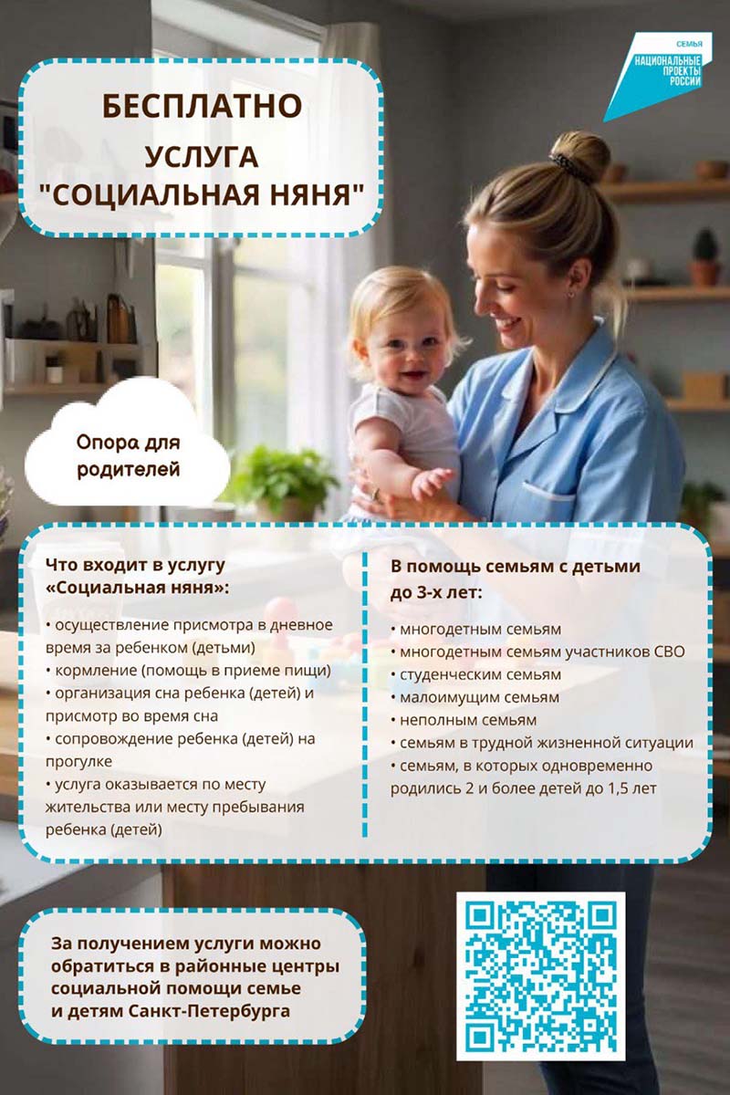 и ухода за детьми до 3 лет в организациях социального обслуживания, а также на дому («социальная няня») для студенческих, многодетных семей, иных категорий в соответствии с критериями, установленными субъектом Российской Федерации;