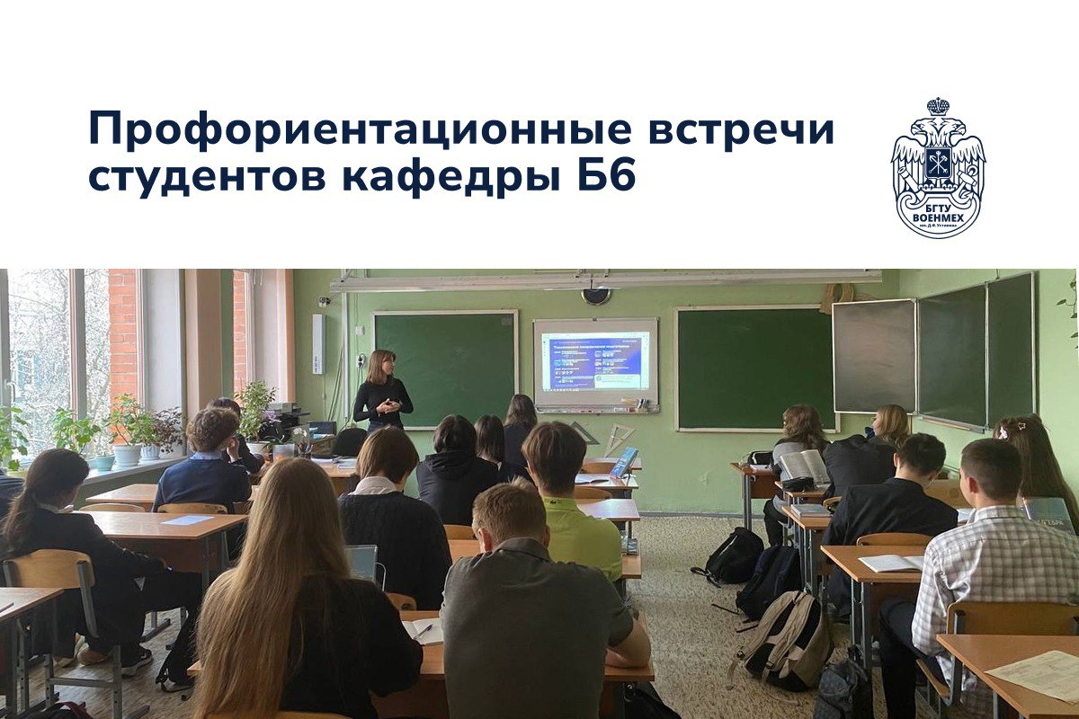 В рамках профориентационной кампании студенты направления 37.05.02 «Психология служебной деятельности» кафедры Б6 «Стратегическое управление высокотехнологичными предприятиями» Русских Елизавета, Генералова Елизавета, Лобач Екатерина, Захарова Дарья под руководством и.о. заведующего кафедрой Б6 канд.психол.наук, доцента Карпенко Д.А. и руководителя образовательной программы «Психология служебной деятельности» доцента кафедры Б6 Болотовой О.В. провели профориентационные встречи в школах: