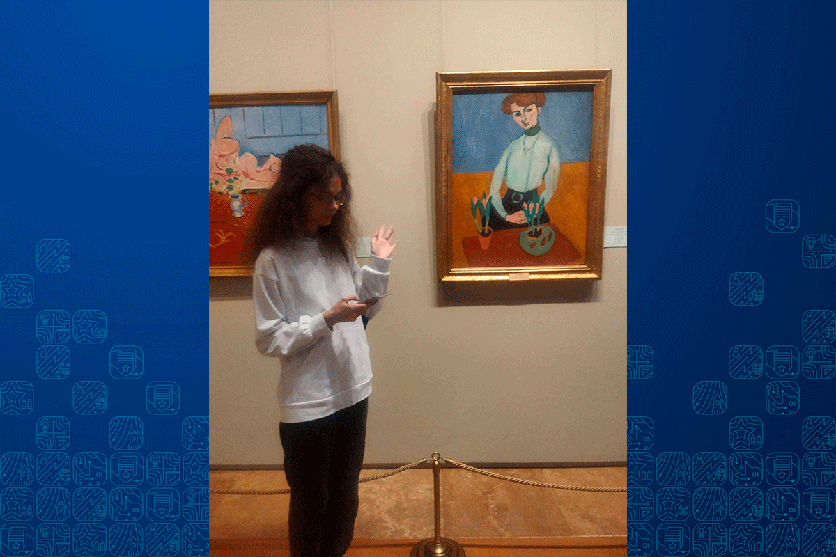 Уровень владения иностранным языком групп Р711 и Р712 позволил студентам самостоятельно подготовить небольшие сообщения на тему «Париж на полотнах импрессионистов» на французском языке. Некоторые из учащихся были в Главном штабе впервые в жизни.