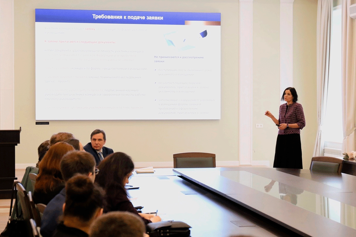 В пятницу, 19 апреля 2024 года, в БГТУ «ВОЕНМЕХ» им. Д.Ф. Устинова с разъяснительным докладом об особенностях предстоящего конкурса грантов Правительства Санкт-Петербурга для студентов и аспирантов выступила начальник отдела научной политики и инноваций в образовании КНВШ Правительства Санкт-Петербурга Насырова Галина Рафаиловна.