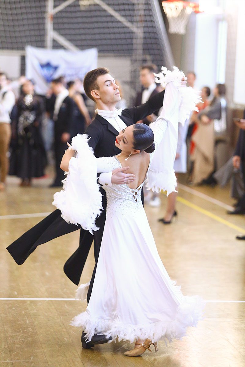 Студия спортивных бальных танцев — уникальное пространство, где студенты могут раскрыть свой творческий потенциал, развить танцевальные навыки и покорить паркеты региональных и всероссийских конкурсов. Основная цель занятий в студии — всестороннее развитие опытных и начинающих танцоров. Спортивные бальные танцы — это не только красивые движения, но и дисциплина, работа в паре, выражение эмоций через танец, умение слышать музыку и чувствовать партнера.